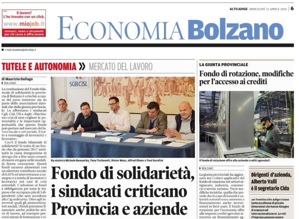 La conferenza dei sindacati ha riscontrato grande attenzione sull’ Alto Adige e sul Corriere di oggi.